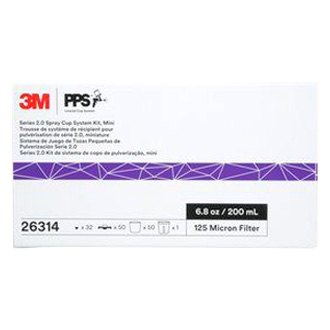 3M PPS Series 2.0 Spray Cup System Kit, 26314, Mini (6.8 fl oz, 200 mL), 125u Micron Filters